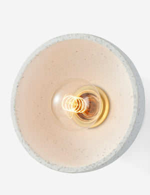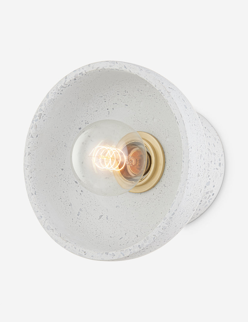 Blue-gray terrazzo brings a mineral appeal to the soft, modern lines of the Serrano lighting collection. This bowl-like sconce offers a sculptural feature that will gently elevate with understated elegance. We love this sconce light styled in multiples for wall lighting with an architectural feel.