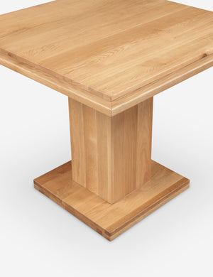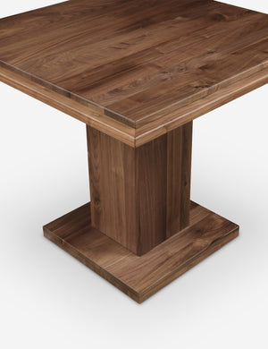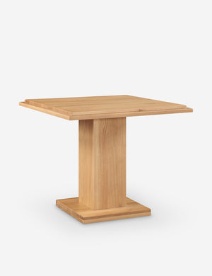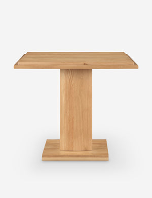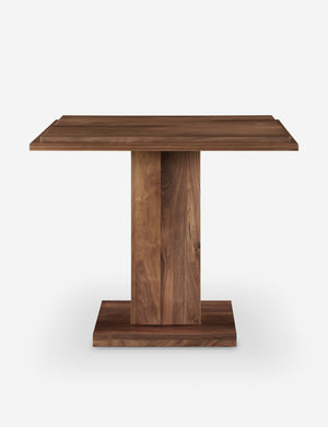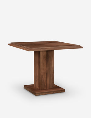 The Severo table pairs clean impact with modern warmth. This bistro table features a double square top and bold rectangular pedestal in solid wood with a rich natural grain that invites relaxed dining. Style it for a kitchen nook or as a refined entryway accent.