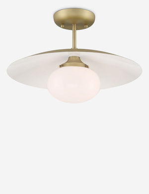 Strike a modern tone in any space with the Shah semi-flush mount light. Its sleek, sculptural form features a slim stem suspending a shallow shade over a frosted glass globe. We love this compact overhead fixture for layering bright ambient light overhead with a minimalist feel.