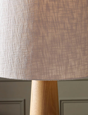 Modern minimal meets traditional. A tapered wood base and boucle linen shade bring a soft structure to this floor lamp. Style it in a corner or lounge area as a warm reading light with a designer edge.