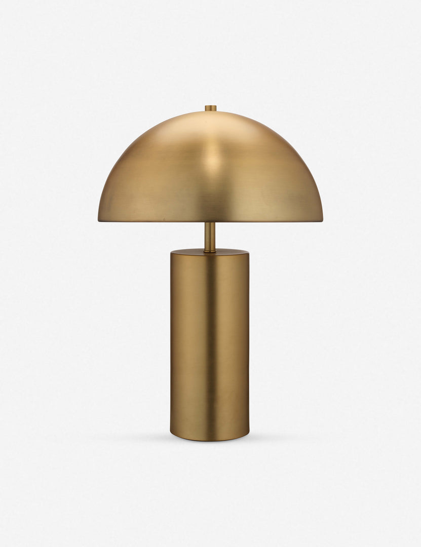 Sleek and lustrous, this streamlined table lamp features a dome shade and antique brass finish. Whether polishing a moody living room look or furnishing a home office with a luxe accent, this lamp provides a warm, modern appeal that will elevate your space.