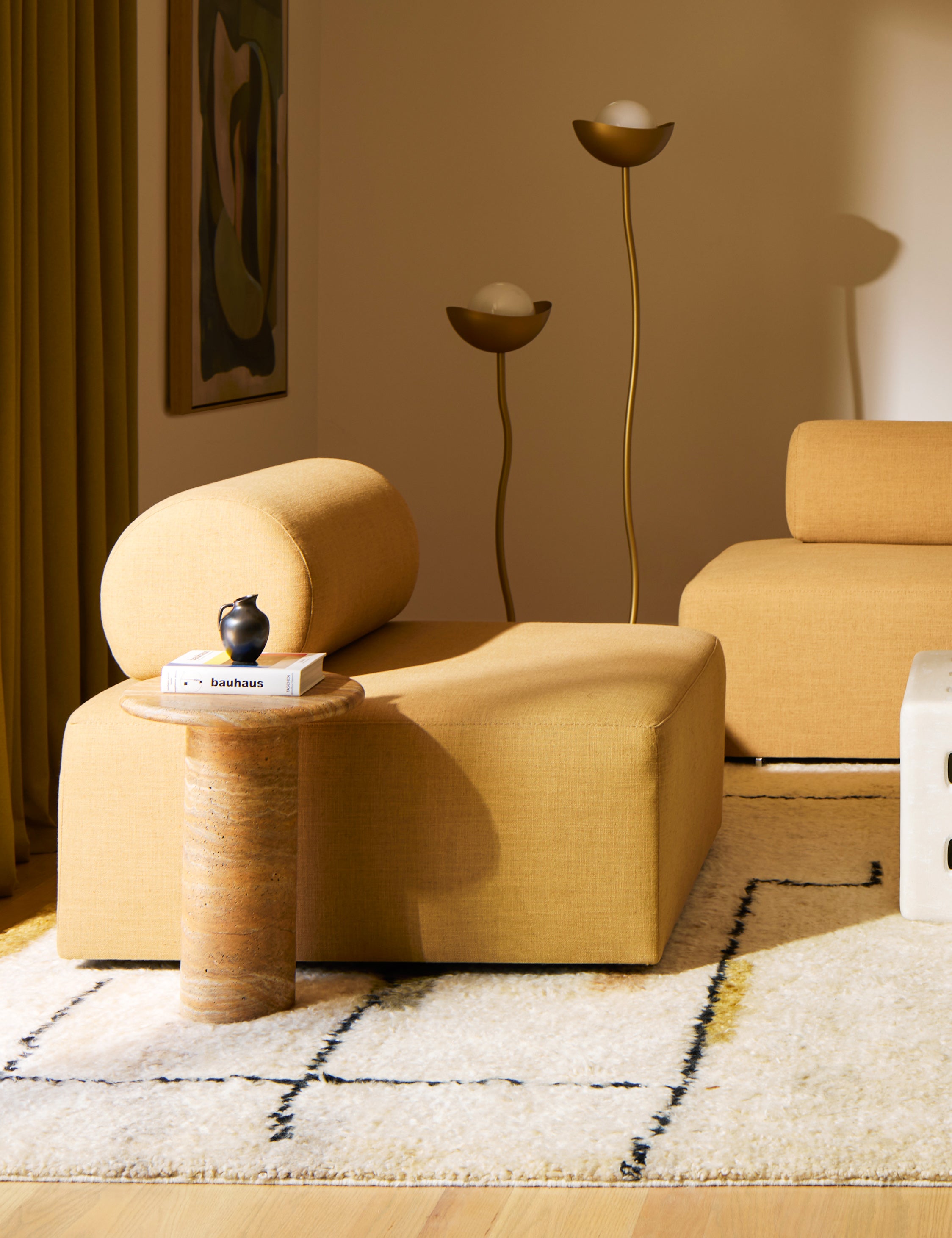 Our Sloman chair's soft lines and clean, armless design cut a modern silhouette for laying back in style. This lounge chair's sleek shape is a striking addition to comfortable yet social curations. Tailor the look for impact with a beautiful selection of fabrics.