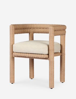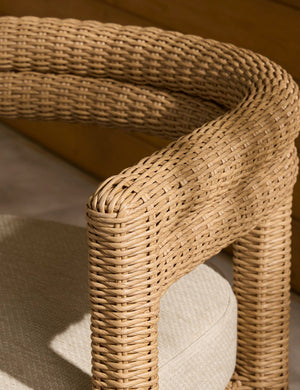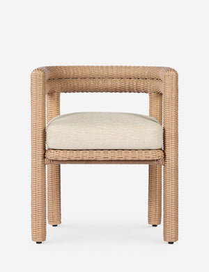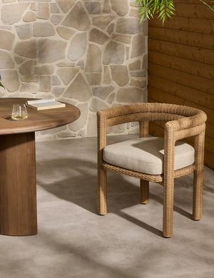 Woven texture styles the Sola dining chair for al fresco elegance. The vintage-inspired design brings chic character to your patio or terrace, with all-weather wicker providing durability and comfort. We love this sculptural dining seat paired with a modern table to set off your outdoor living space with an artful edge.