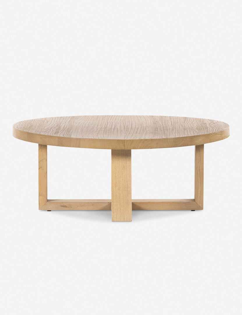 Clean, crisp lines complement the light, natural finish of this elemental coffee table design. We love this chunky top of this wood coffee table for a grounded aesthetic full of organic textures.