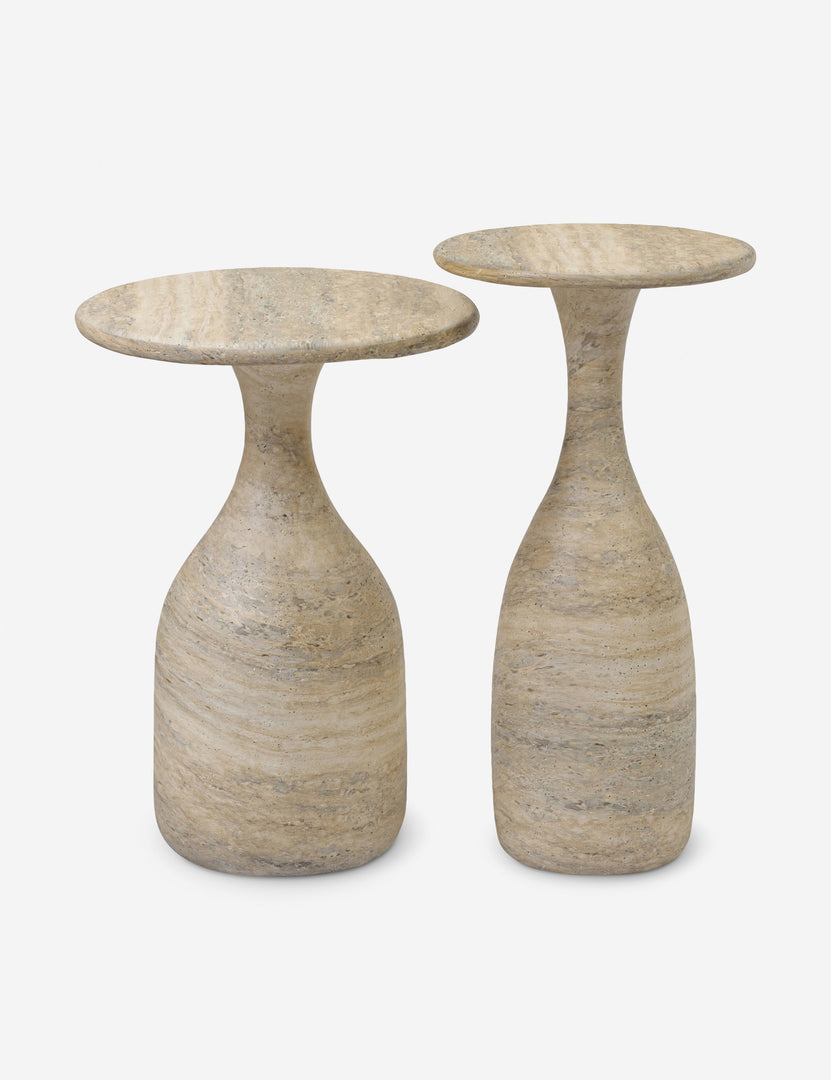 Softly shaped and grounded in texture, these nesting side tables are a striking set. Their fluid silhouettes are crafted from concrete with a marbleized finish, echoing the classic lines of handmade pottery. Styled as a layered pair, these end tables bring refined dimension to any space.