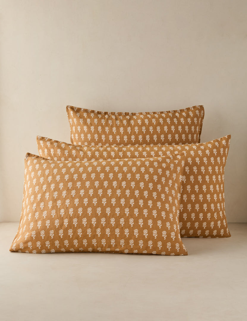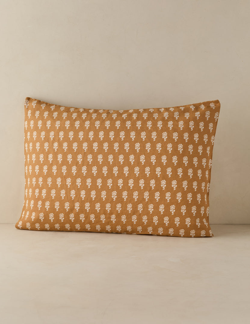 Our Stanfield bedding pairs rich, earthy color with a delicate floral repeat, offering a grounded take on a timeless pattern. Crafted from a linen-cotton blend, it layers effortlessly into a warmly collected bedscape. This sham adds sophistication with a tailored touch.