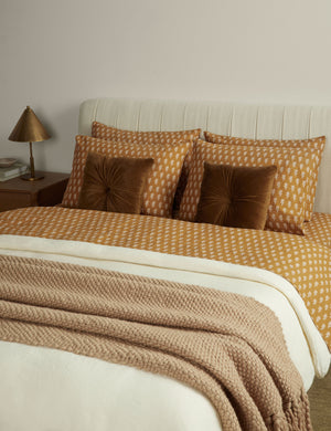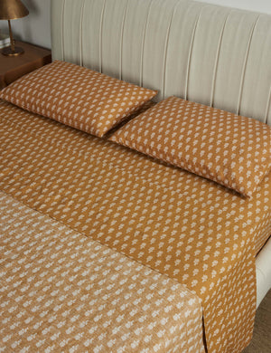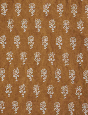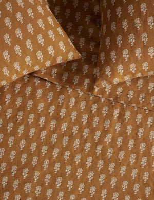 Our Stanfield bedding pairs rich, earthy color with a delicate floral repeat, offering a grounded take on a timeless pattern. Crafted from a linen-cotton blend, it layers effortlessly into a warmly collected bedscape. This sheet set underpins your bedroom with a tailored touch.