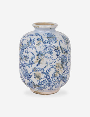 Vintage-inspired florals and heavy distressing lend these terra-cotta vases a timeworn charm. Style this trio together on a console or windowsill, or space them out for a layered, collected look.