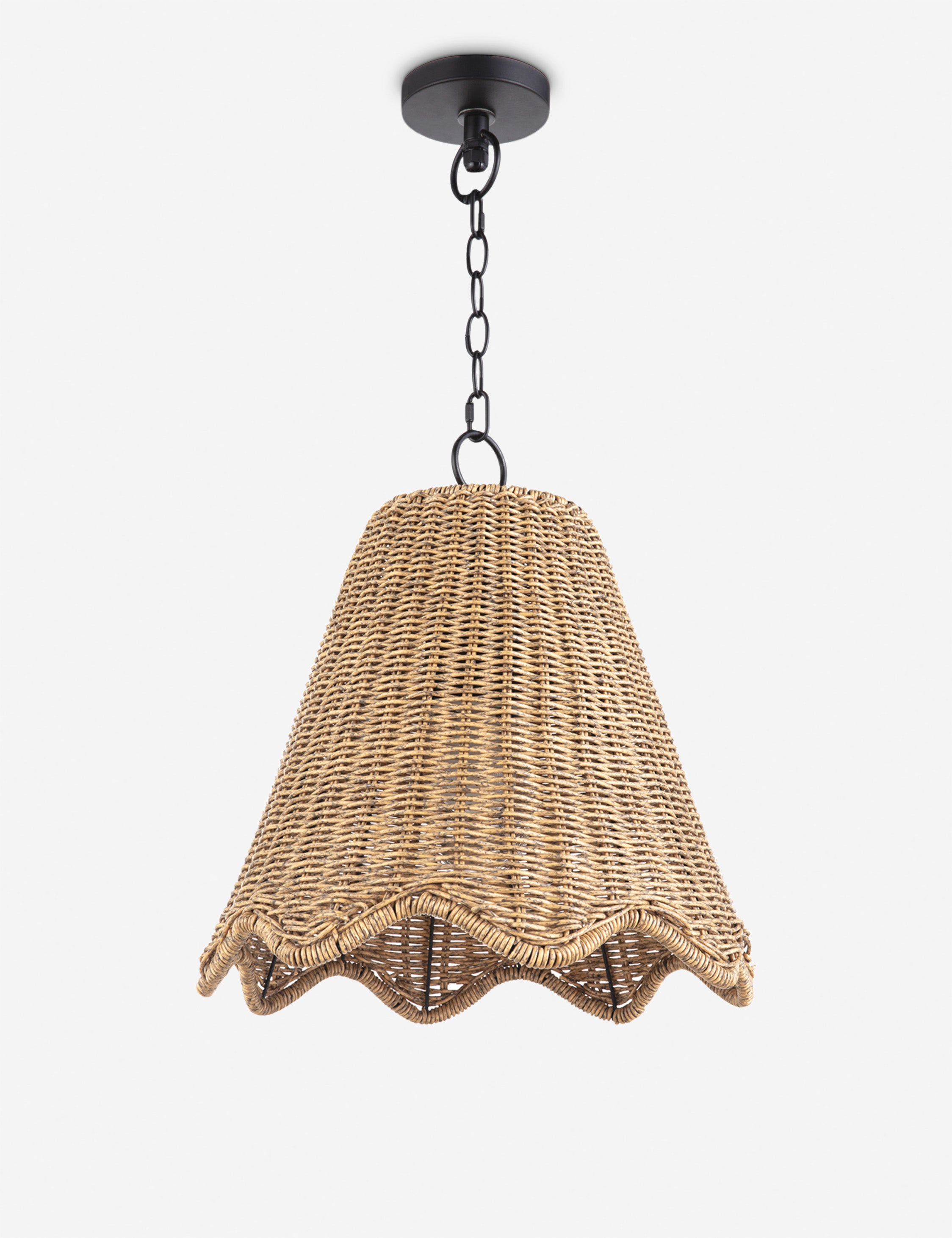 Add a touch of charm to your lighting design with this wicker pendant light. The basket shade features a classic tapered silhouette with scalloped edges for a chic look. This pendant is wet-rated and woven with a durable rattan-like cord to bring fresh texture to outdoor lighting.