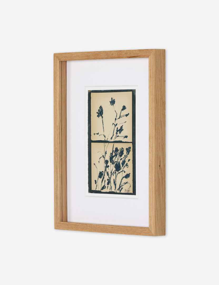 We love the delicate elegance of this botanical silhouette. The piece features floral forms in contrast against a soft cream backdrop, sectioned and bordered in black—the perfect addition to a refined curation. The artwork is float-mounted and matted for a striking presentation.