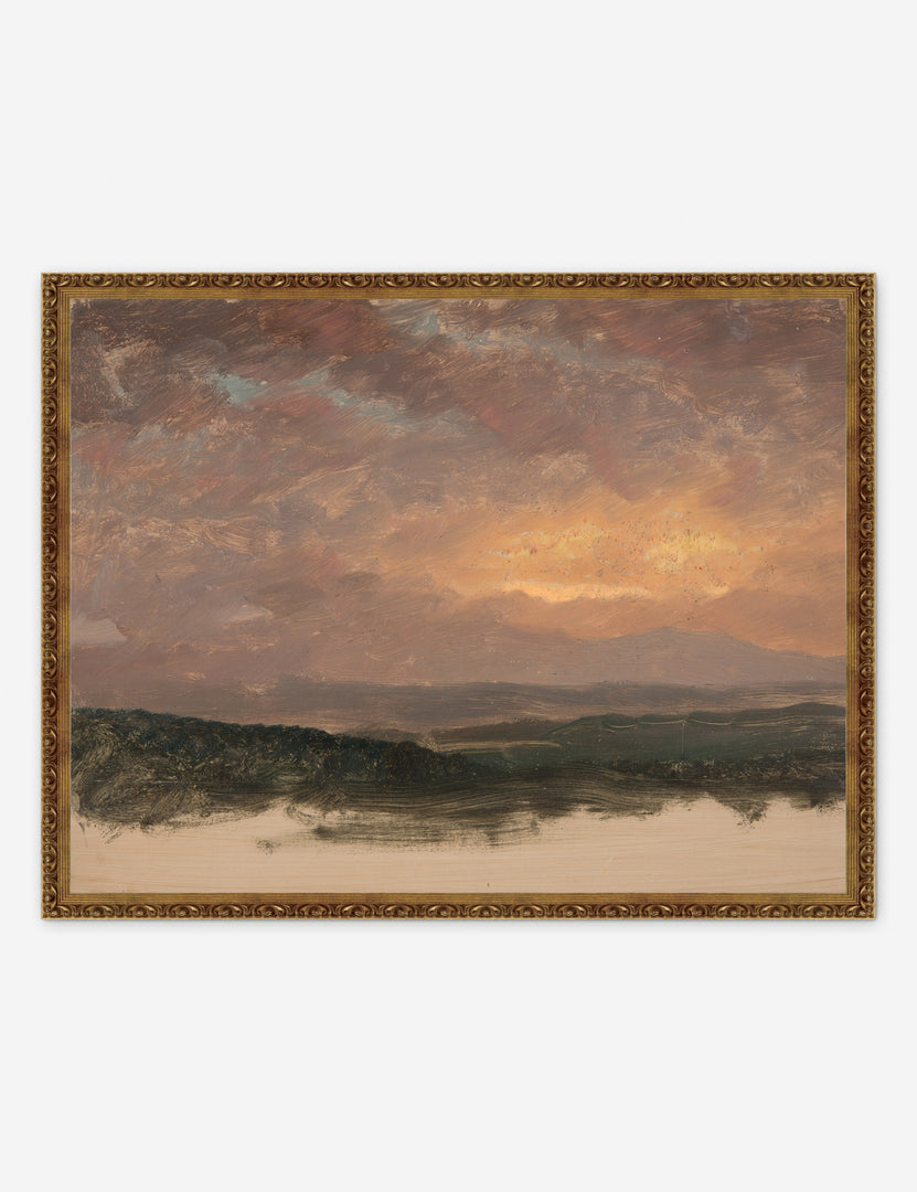 Create a moment of depth and color in your wall decor with this beautiful reproduction of a Catskills landscape. The piece looks out over a serene river scene with mountains in the distance, framed by an arch. Add this piece to a gallery art wall for a classic touch that inspires timeless appeal.
