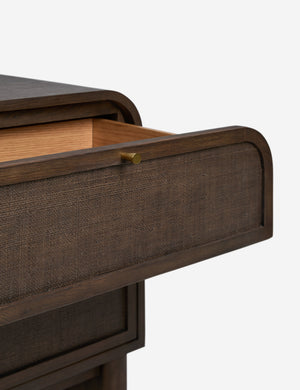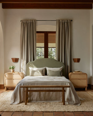 Keep it timeless for a look that's always fresh with Suzette. The collection's rounded oak frames feature grasscloth paneling for a soft, airy feel full of natural texture appeal. Looking to upgrade your bedside table with ample storage and soft-close drawers? This nightstand offers a gently elevating touch.