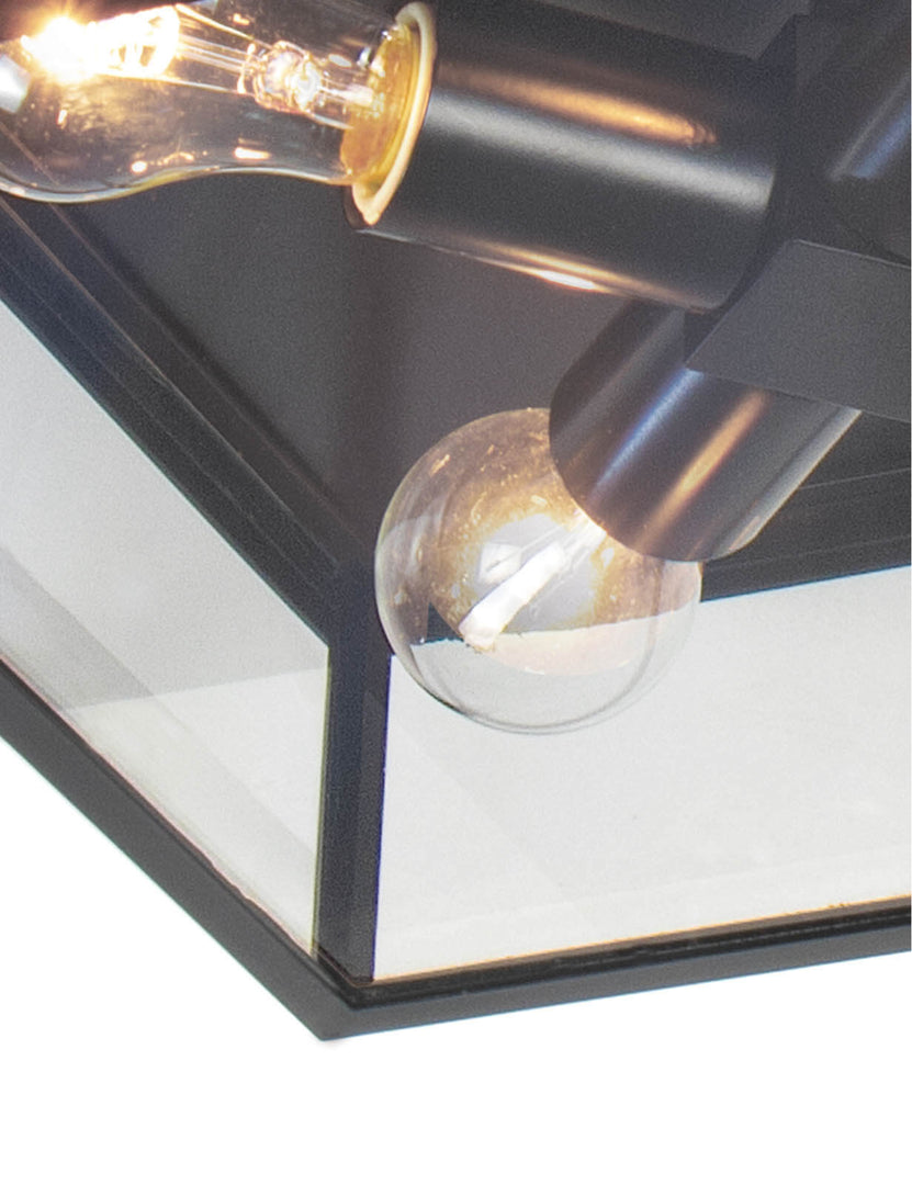 Bring a designer flair to outdoor lighting. The Sydney flush mount light from Regina Andrew features a modern take on a box lantern design with a stylish black case and clear glass panes. This damp-rated ceiling light offers a sleek and timeless look—perfect for covered entryways, porches, or terraces.