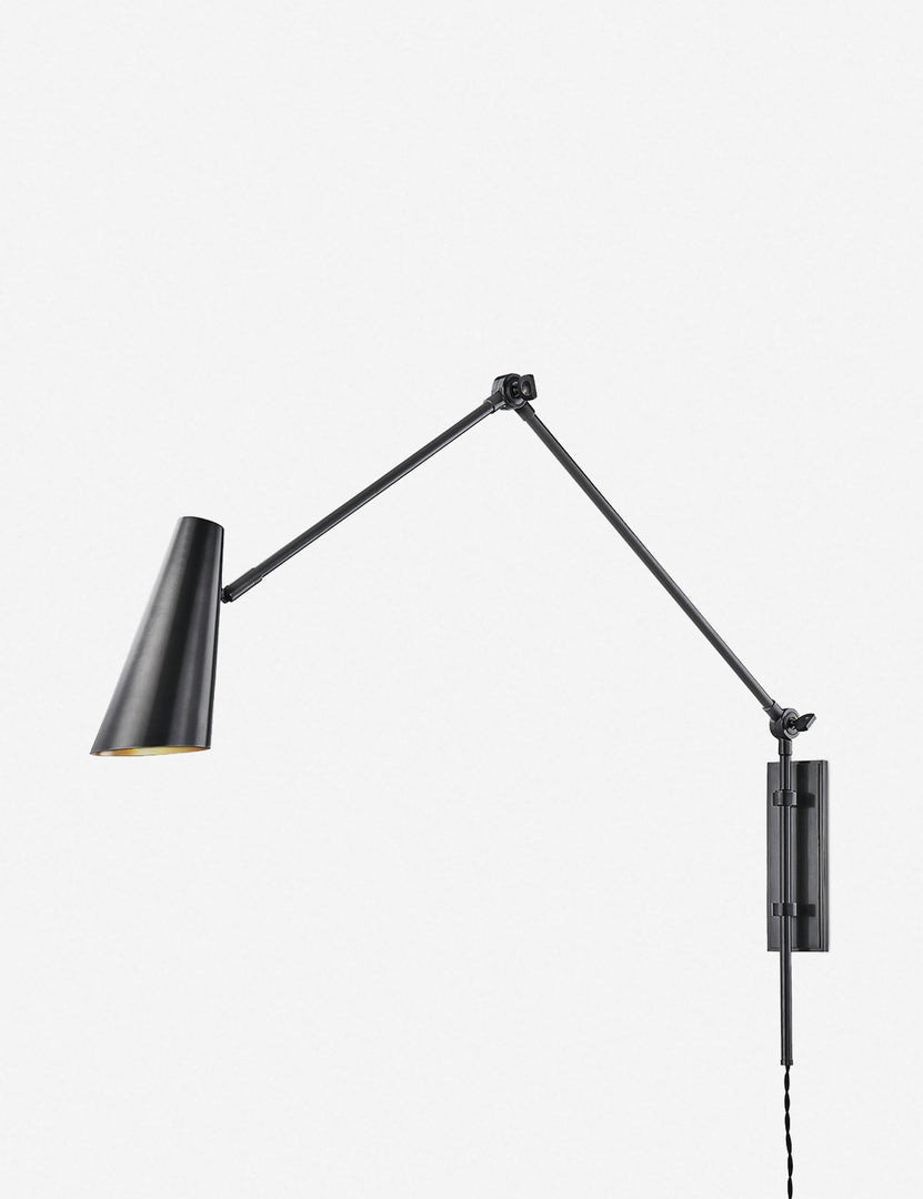 Sleek and modern design meets traditional task lighting with this wall-mounted sconce. The slim, adjustable arm and conical metal shade provide perfectly pointed light for reading in bed or working in your home office.