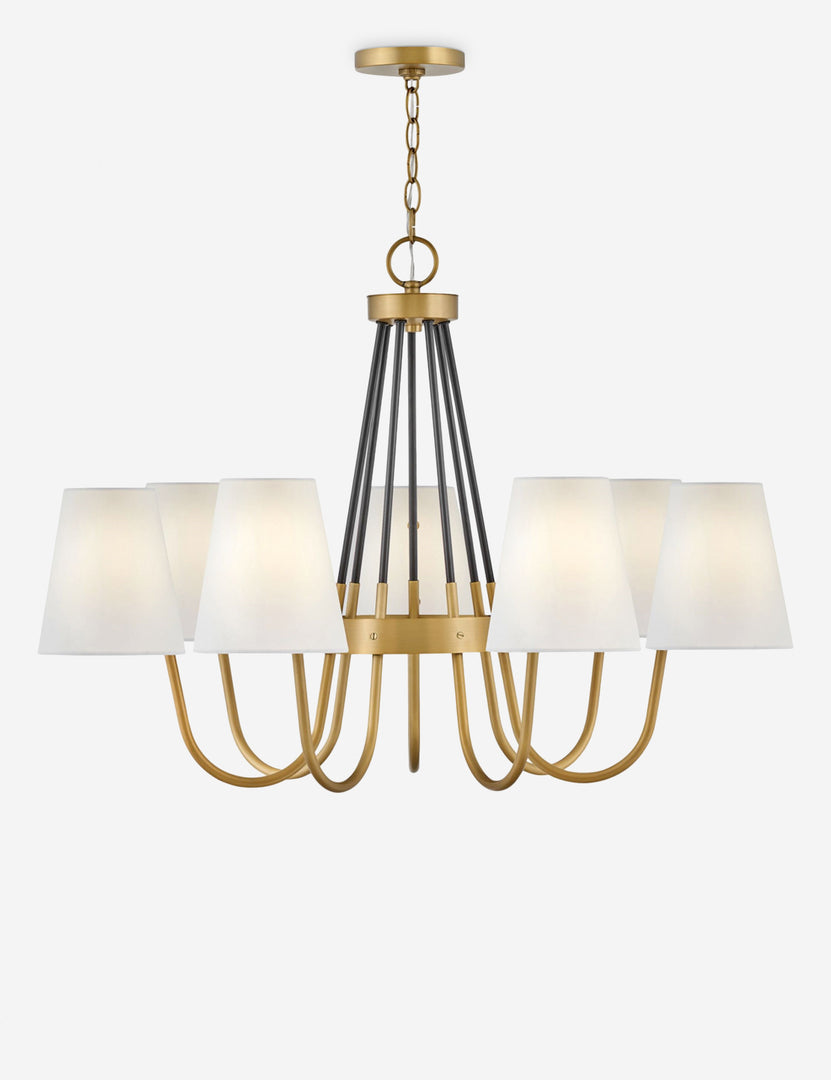 The Teague chandelier inspires fresh appeal with a timeless air. Tapered shades top the slender curving arms creating a graceful silhouette with transitional appeal. Bring understated splendor to a living space or entryway with this elegant chandelier design.