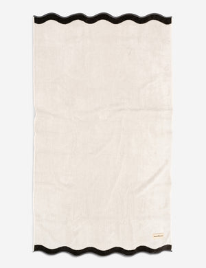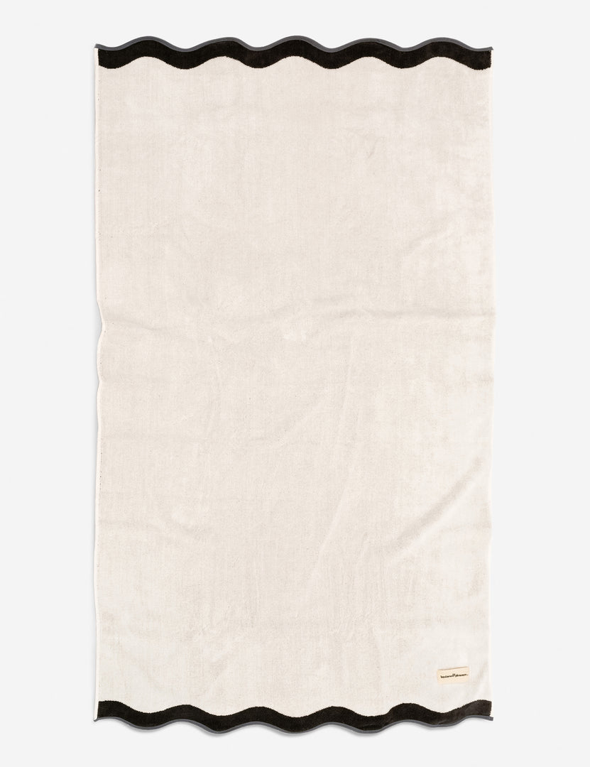 From weekend excursions to poolside hangs, this wavy beach towel offers a chic take on a summertime essential. The bold palette pops with sophistication, while accent trim sets off the towel's playful shape. Spread out for a nap or wrap up in soft, absorbent comfort with the ultimate accessory for whimsy and leisure.