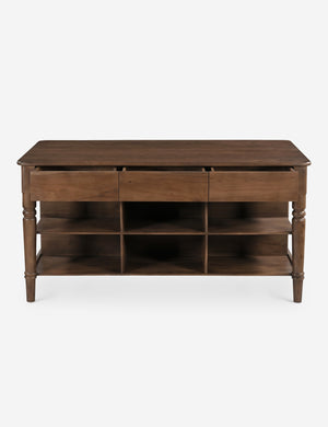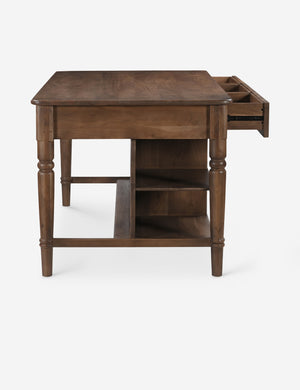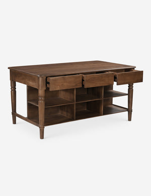 The Trusley kitchen island offers classic character while extending your kitchen workspace. Turned legs, a warm finish, and open shelving make it a natural fit for traditional or transitional kitchens. With space to prep, serve, or gather, it's a grounding anchor piece with timeless appeal.
