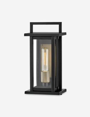 The Tull sconce elevates functional lighting with a versatile design grounded in elegance. Clean lines form a linear profile that stuns with a sleek yet stately impact in black. This sconce light's clear glass panes and bronze-finished backplate offer a bright pour of light—perfect for patios or walkways.