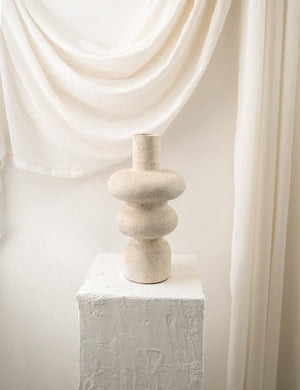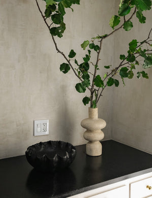 A tiered silhouette and in terracotta give the Ulun Vase a modern feel. The tall neck suits a few pared-back stems or a single sculptural branch. Powered by People works with makers from all over the world to bring small-batch, responsibly made goods to market, like this piece from Twenty Third by Deanne.