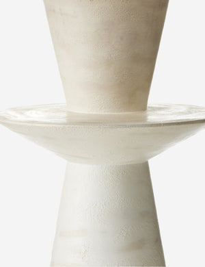 Sleek, angular lines bring a sculptural edge to this wood table lamp—finished in a soft white lacquer for a subtle play of texture that shines in the light. We love this lamp's pairing of organic materiality with a dramatic form for a grounding balance in modern decor.