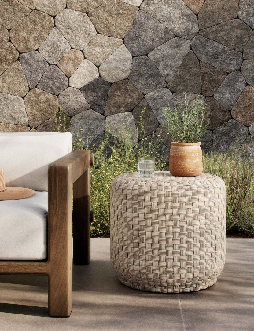 Four Hands brings their exceptional craftsmanship to a timeless collection rooted in Amber Lewis' perennial California style. An artisan finish and rounded shape create a juxtaposition of hard and soft for this modern indoor / outdoor side table. A recessed base adds interest to its smooth silhouette, while its versatile size make this end table a stunning addition in any setting.
