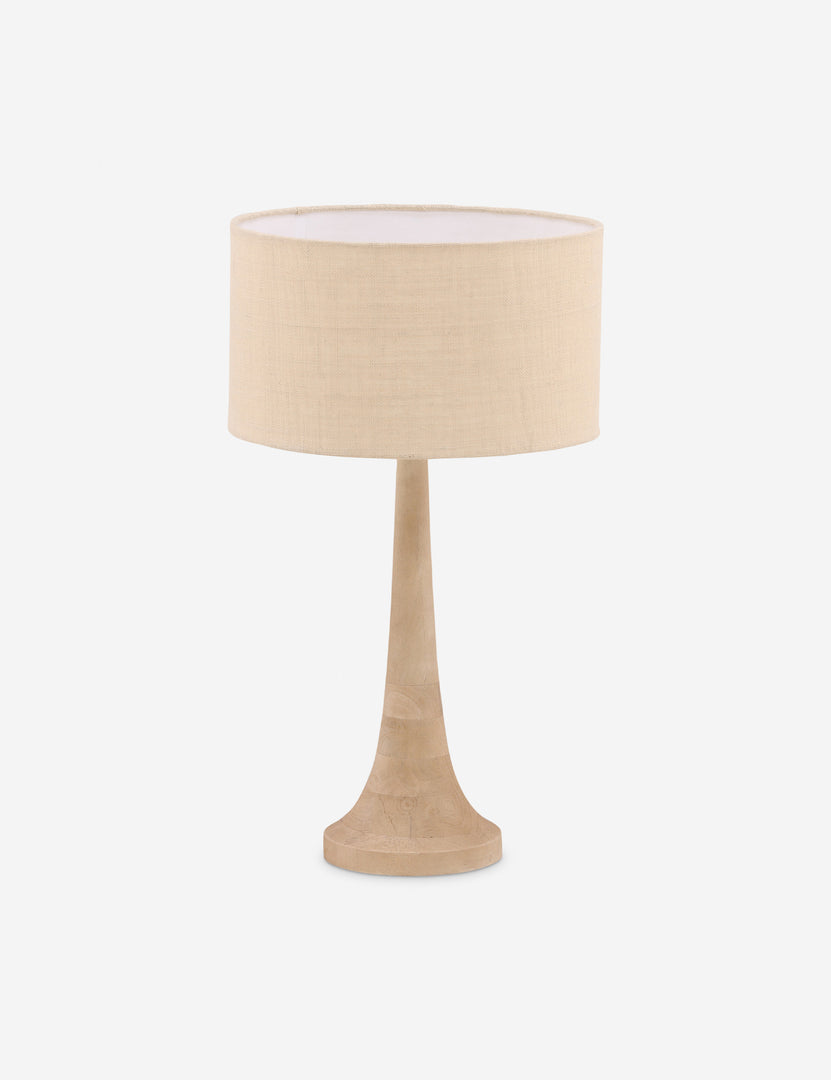 With its flared silhouette and refined proportions, this table lamp is a quiet study in sculptural grace. We love the subtle texture of the woven jute shade against the clean lines and light finish of the lamp’s wood base.