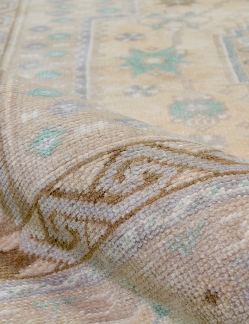 A vintage wool rug instantly transforms your space—adding warmth and rich color, all while feeling like a discovery from far-flung travels. Made entirely by hand in Turkey, this hand-knotted floor rug is truly an investment for your home, a stunning one-of-a-kind centerpiece to build and layer your style onto.
