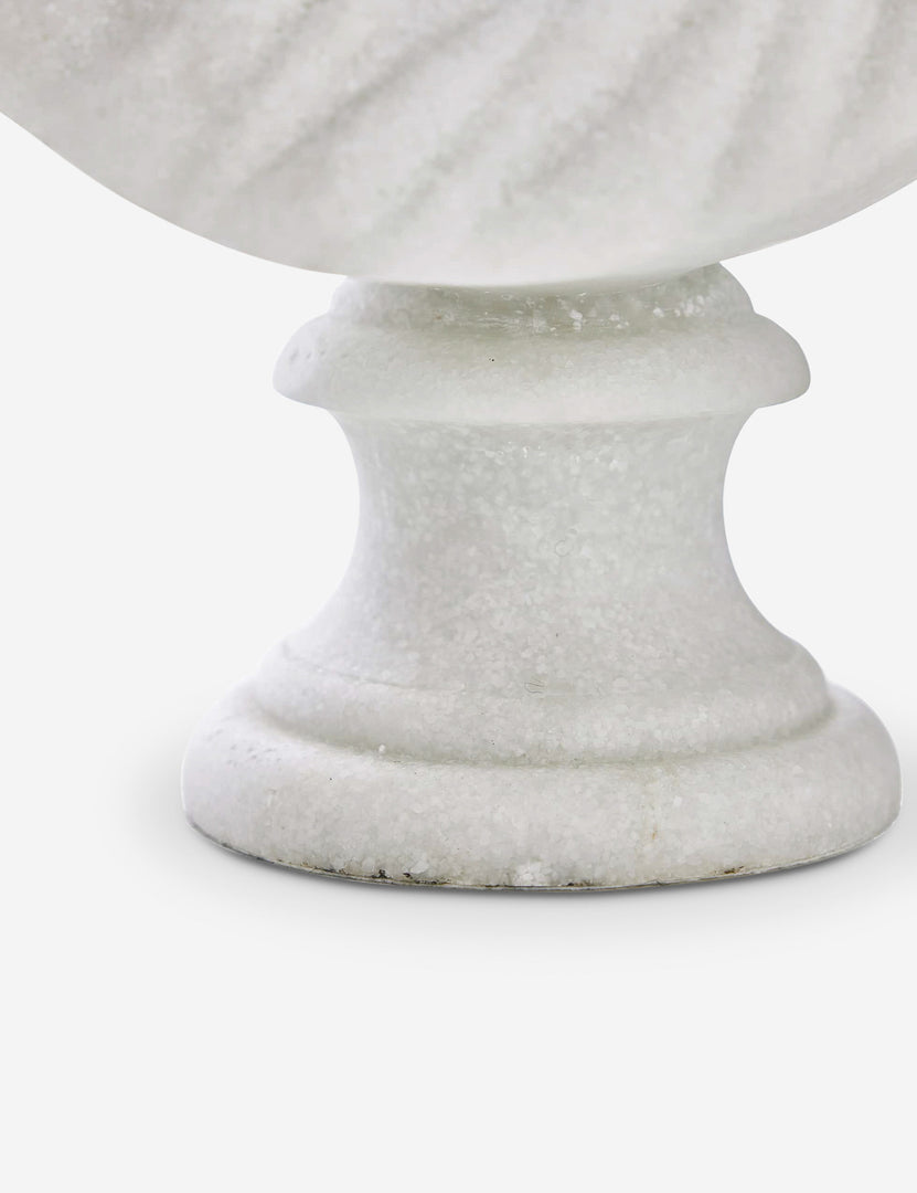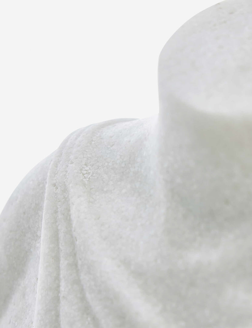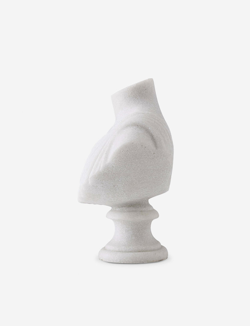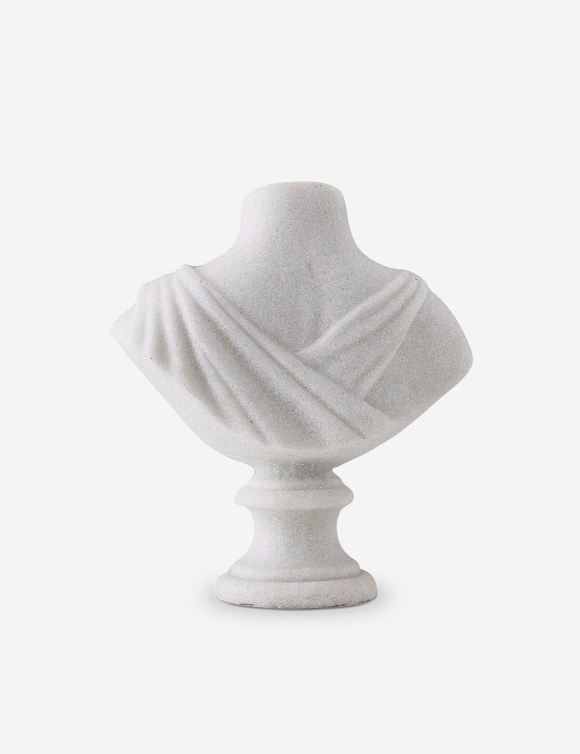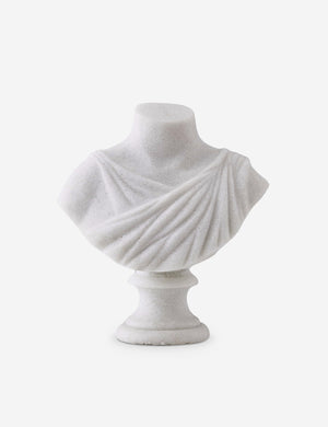 Classical style gets a modern touch in this skillfully molded bust. The piece is inspired by Roman sculpture and features intricate cloth-like detailing, bringing texture to the stark white form. We love this for a traditional curation or adding a postmodern edge to an eclectic edit.