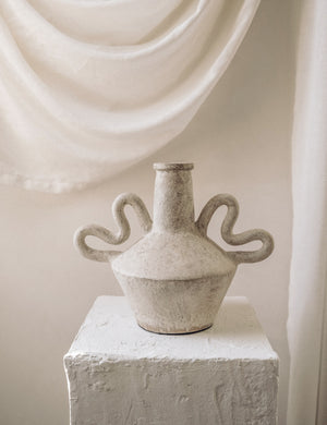 A tall neck and coiled handles give the Wang Vase a sense of movement and quiet drama. Style it with long stems, olive branches, or leave it empty as a statement piece. Powered by People works with makers from all over the world to bring small-batch, responsibly made goods to market, like this piece from Twenty Third by Deanne.