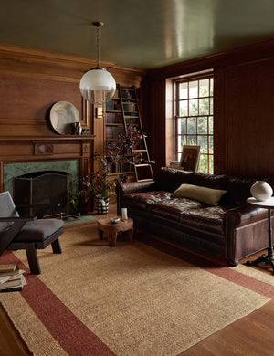 A handmade rug collection from Leanne Ford x Loloi designed to ground your space with warmth and artistry. Handwoven from jute, this natural fiber rug layers tonal depth and texture underfoot. Accent stripes bring definition to this design for a modern look with an organic feel.