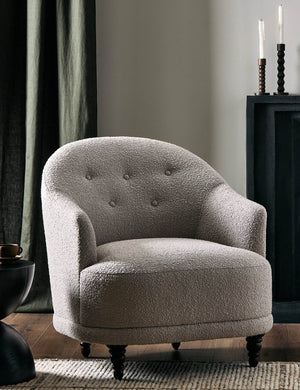 With its deep seat and barrel back, the Whitford chair is an instant classic. Traditional details like button tufting and turned legs bring sophistication to the modern design, styling a look that's stylish, timeless, and readily transitional. We love this accent chair for a tailored space that tastefully blends new and old.