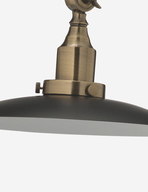 This floor lamp pairs precision and contrast with a distinctly mid-century edge. The slim iron frame is finished in antiqued brass, offset by a black shade and base for a sharp two-tone look. With an adjustable arm and joints, it's perfect for reading corners or workspaces that need task light.
