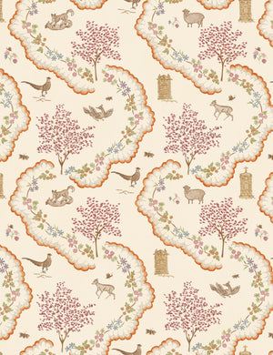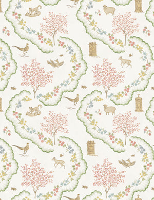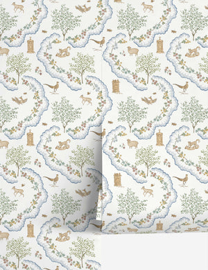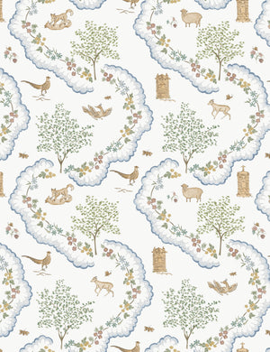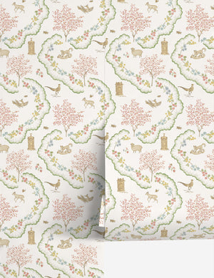 Wild garden motifs wind through this pastoral wallpaper in a soft, sinuous repeat. The flora and fauna unfold with a storybook charm, offering a delicate touch full of detail. Let this richly patterned wallpaper bring countryside character to a small room, creative corner, or cozy nursery.