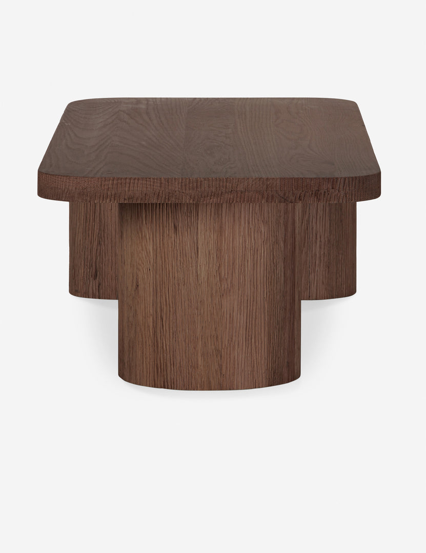 A solid oak construction with hand-carved detailing brings an artisan warmth to the Willem coffee table. We love how the rustic textures play against the modern silhouette with its mismatched pillar legs, fashioning an artful centerpiece for a grounded design. This wood coffee table is set to bring a sculptural edge to minimalist edits and chic curations.