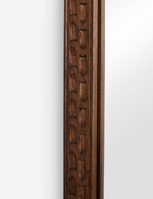 Heidi Caillier infuses this exclusive collection with all the warmth, pattern, and nostalgic details that define her celebrated interiors. The Witt mirror showcases a carved wood frame with subtle patterning, highlighting the craftsmanship and rich texture that define its timeless appeal. This floor mirror adds quiet depth, underscored by the natural grain and rich finish.