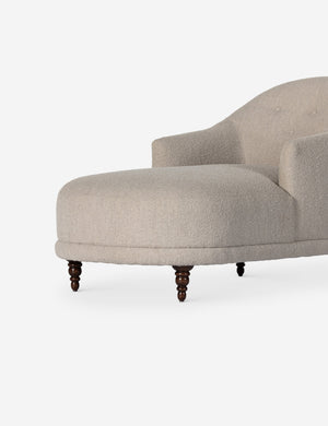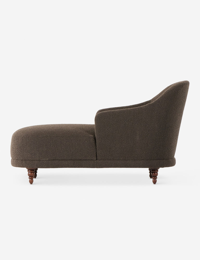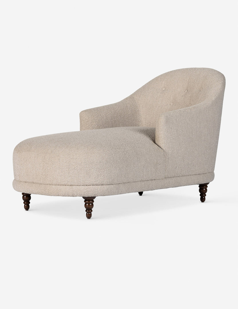 Timeless in its elegance, this traditional-meets-modern chaise is the perfect accent feature for a bedroom or lounge. Sculptural lines soften the classic silhouette, inviting repose. Boucle upholstery and turned legs complete the look for a seamless transitional style.