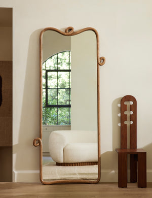 With its looping frame, this mirror brings a sense of whimsy and movement to the room. The tall profile makes it a striking and functional accent to brighten your space. This full length mirror is from our exclusive Sarah Sherman Samuel collaboration and features all the trademarks of her warm, edited style.