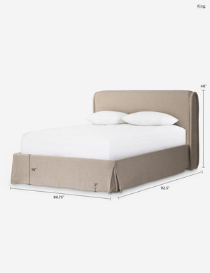 Four Hands brings their exceptional craftsmanship to a timeless collection rooted in Amber Lewis' perennial California style. Soft linen is delicately draped and kick pleated to create a tailored skirt for this modern bed. Its thick, padded headboard features an oversized welt edge that creates a touch of texture and definition for a bed frame that's built to impress in a refined primary suite.
