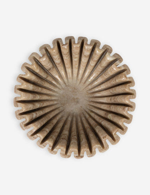This pleated marble dish is marked by its incredible artistry and dazzling textural form. The dynamic shape and luxe material create a true showpiece, perfect for use as a catchall or decorative accent.